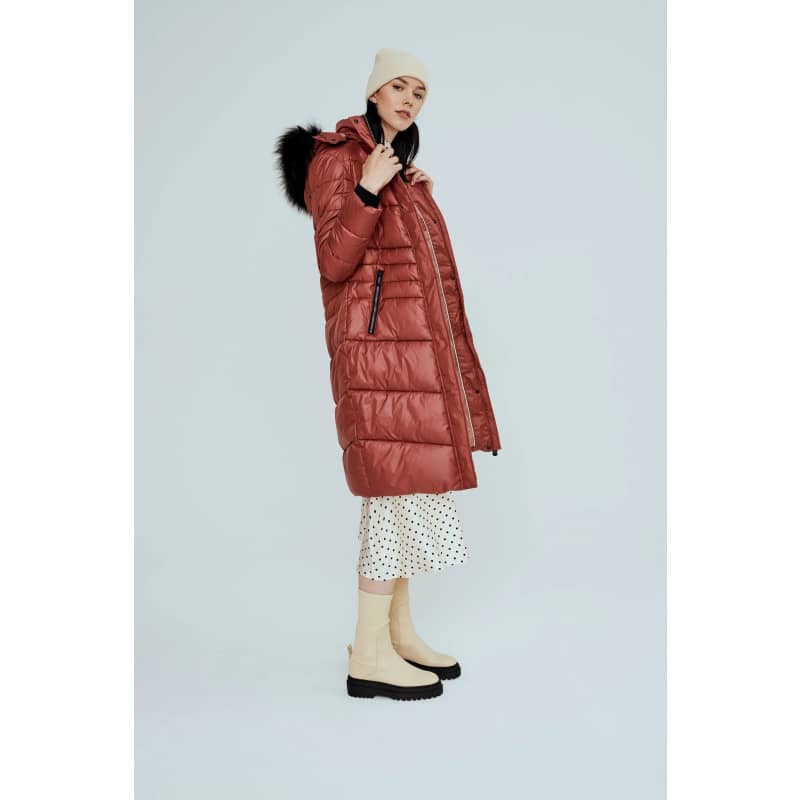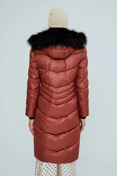 The Celine style is sure to be a lifesaver on snowy days. Its maxi silhouette is detailed with angled pockets and chevron quilting to create the illusion of a more defined waist. The removable hood is trimmed with plush vegan fur.