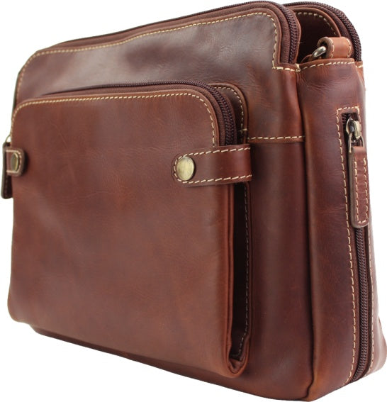 The Rugged Earth Leather Organizer Purse tmakes a great pick for busy women who need something practical. It's made from top-notch, all-natural vegetable-tanned leather that looks sharp and holds up well over time. Double-stitched edges and smooth rounded corners add extra strength, so it stays tough against daily use. This handbag uses full grain leather for strength. It has a hidden zip pocket for concealed carry, with a leather holster that sticks via Velcro on both sides. Three zipped sections sit on top, plus an open middle spot. An organizer pouch expands when needed. Inside, find one zipped pocket, two slip pouches, nine card slots, and sleeve areas. Front snaps let it grow wider, held by magnetic closers. A back zip pocket adds storage. The strap adjusts in leather, and cotton lines the whole thing for lasting use.